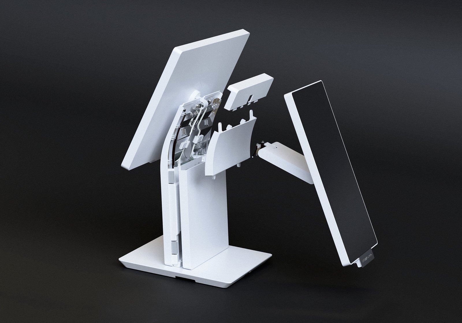 A modular POS system designed for maximum flexibility and long-term use. The device supports both 13″ and 15″ displays, which can be swapped, rotated between landscape and portrait modes, and replaced by the user without tools. The internal hardware module is also fully serviceable and upgradable, giving retailers the ability to customize performance and extend product lifespan. The result is a slim, elegant, and highly functional POS computer engineered for real-world environments.