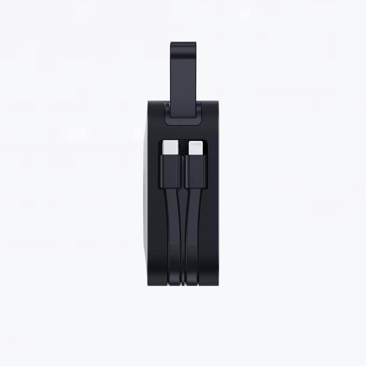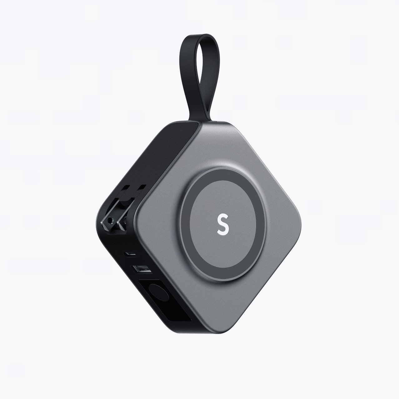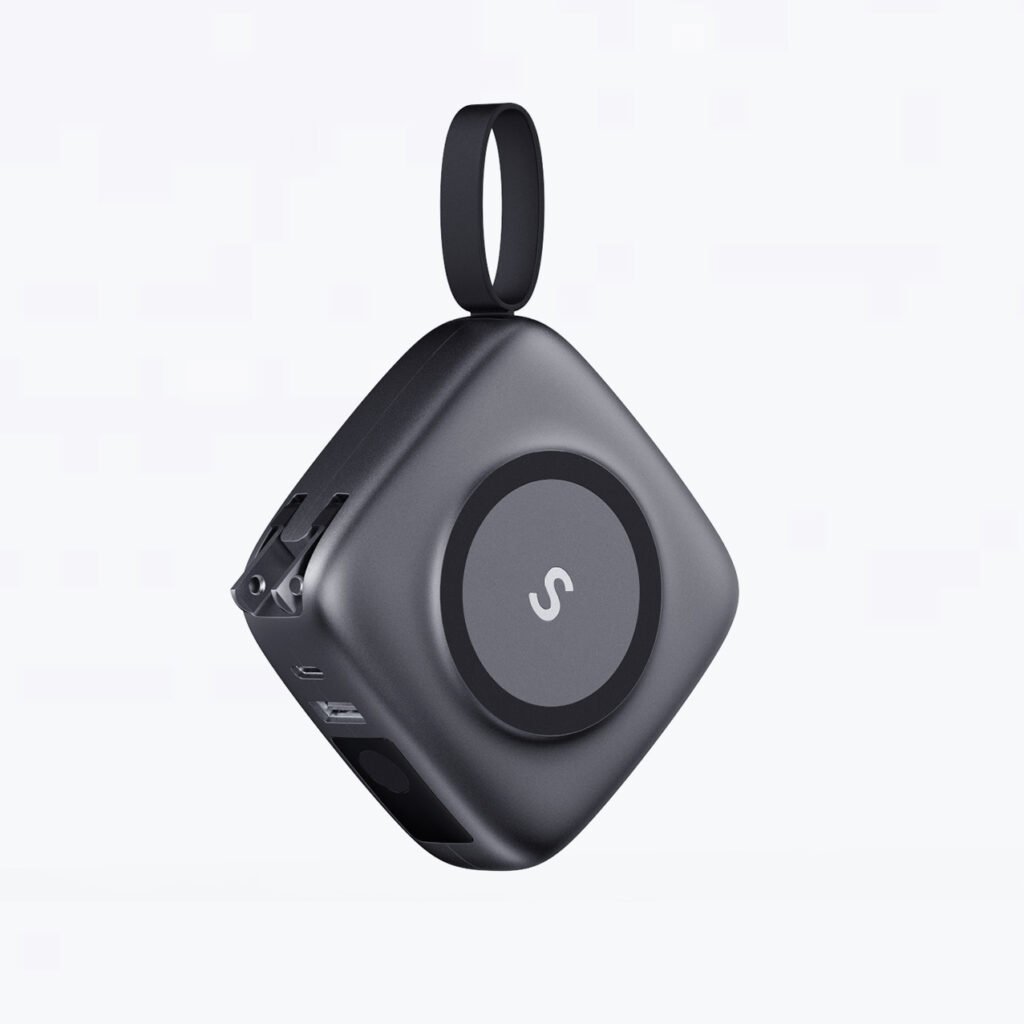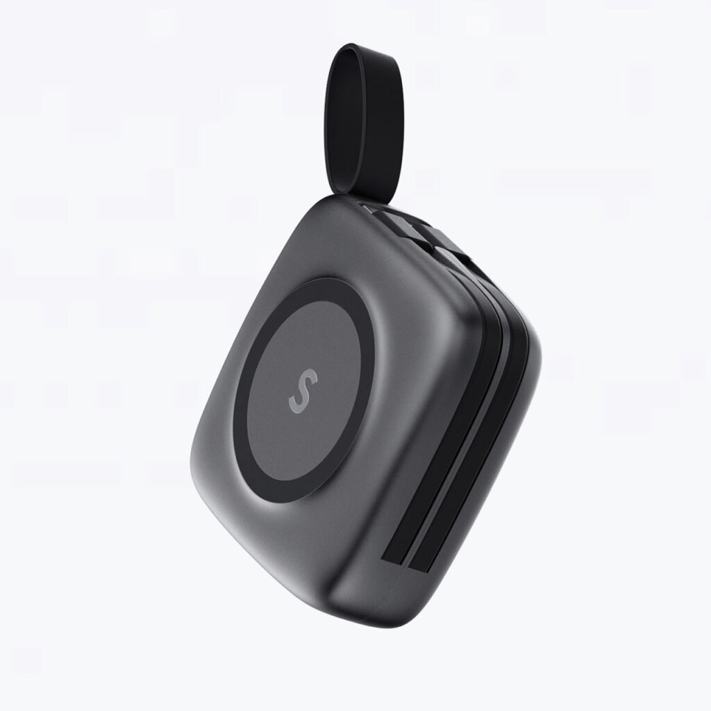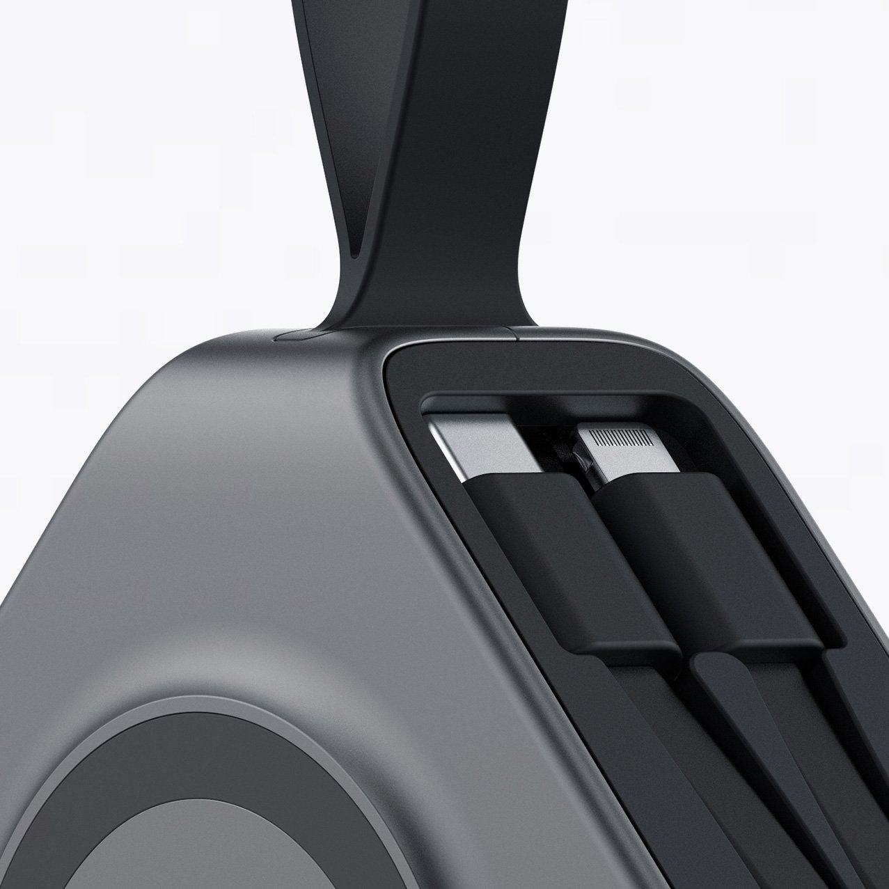 This power bank, designed for Launchde, includes two integrated cables, a port, display, and a wireless charger. Its design has been refined for a more distinctive and recognizable appearance. Buy here.