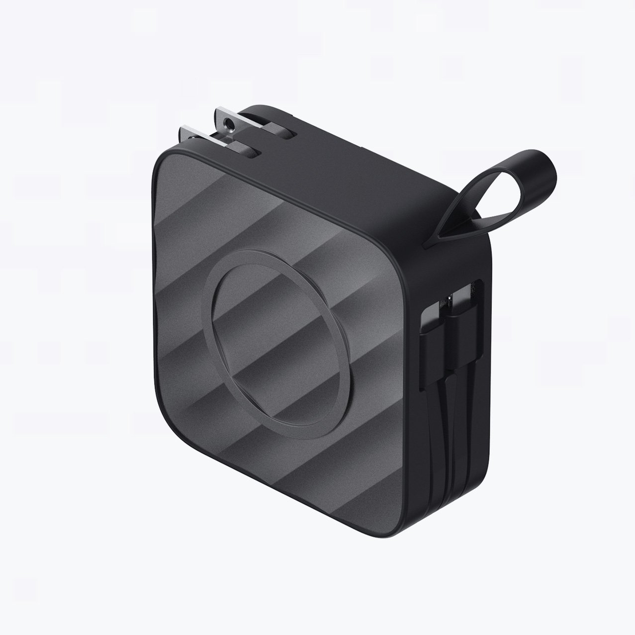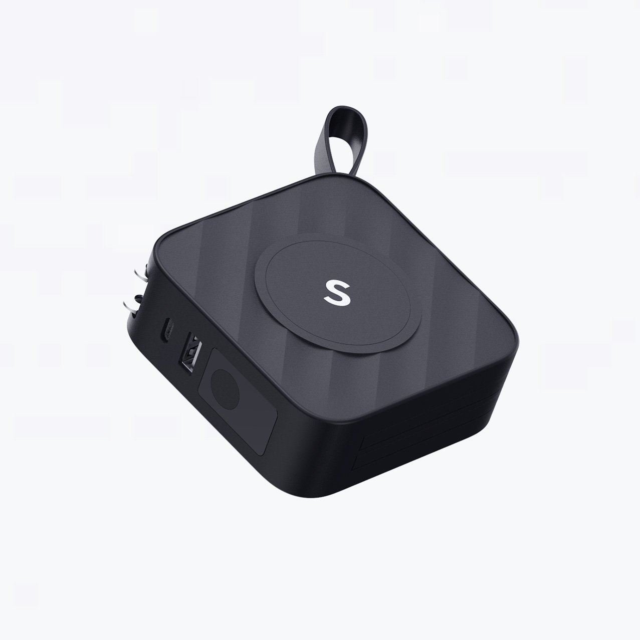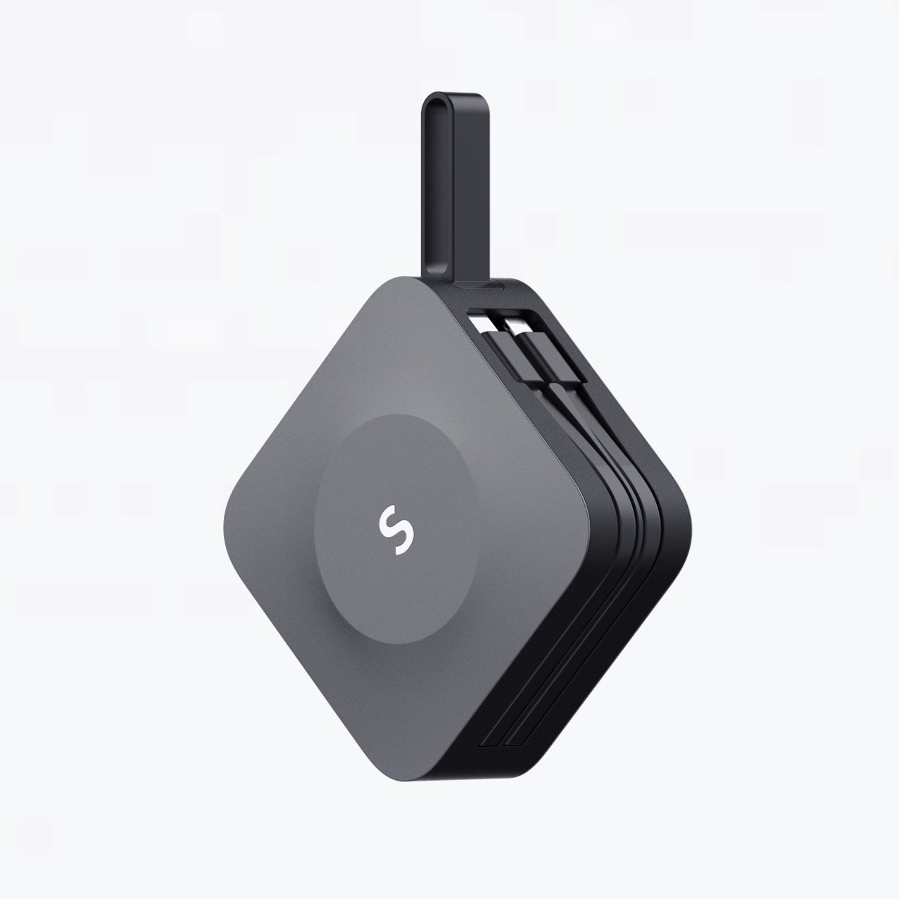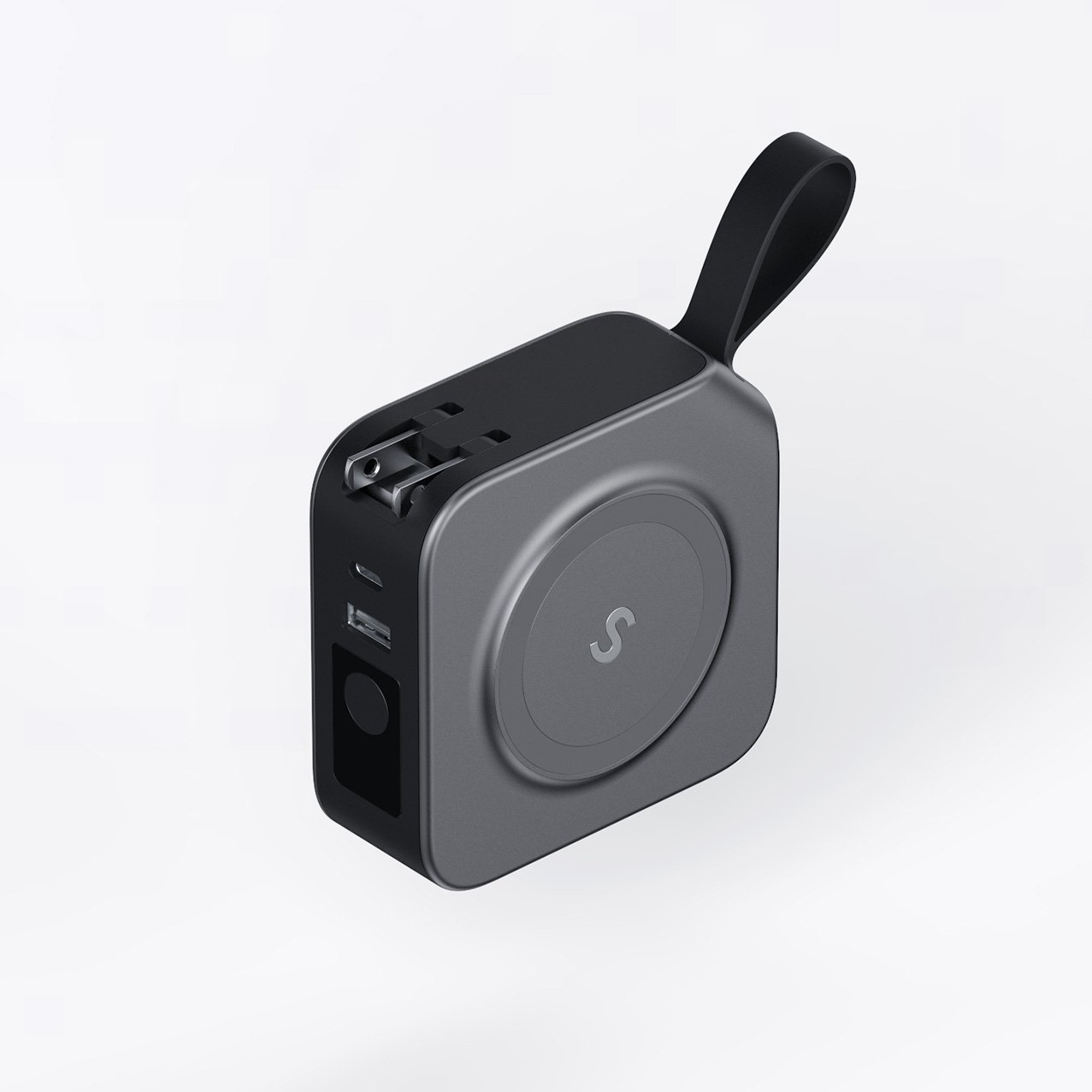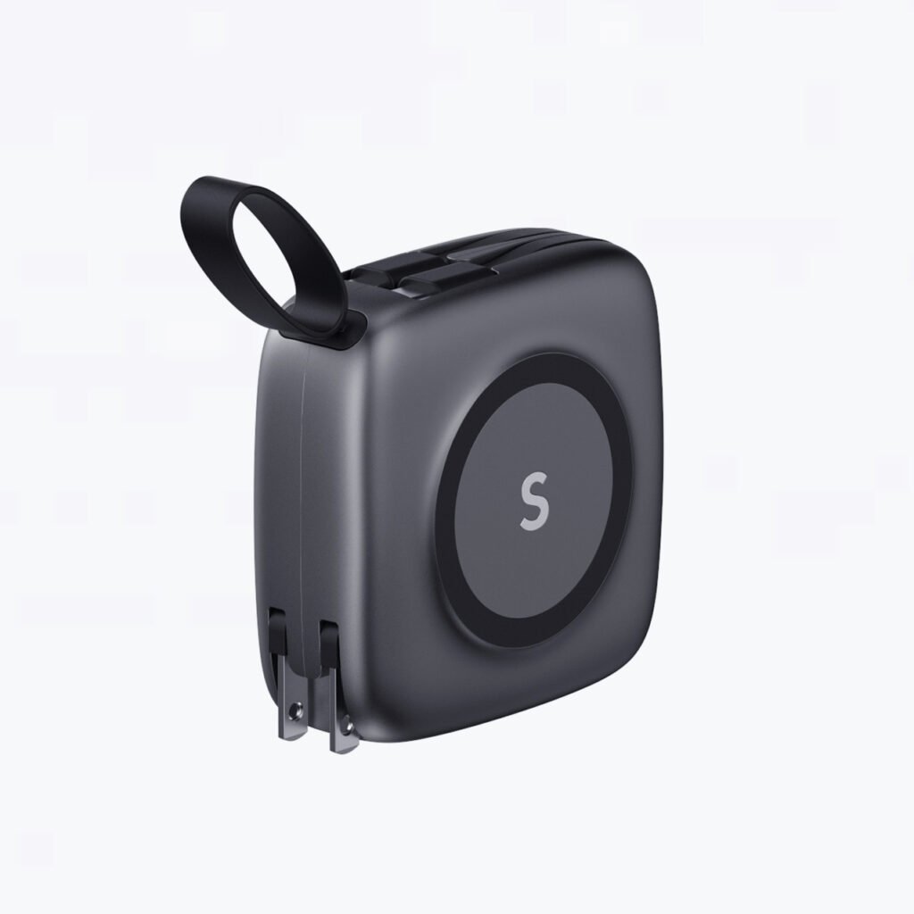 This power bank, designed for Launchde, includes two integrated cables, a port, display, and a wireless charger. Its design has been refined for a more distinctive and recognizable appearance. Buy here.